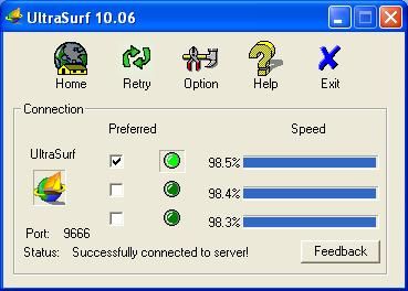 1. Pada tampilan utama UltraSurf, klik tombol Option.